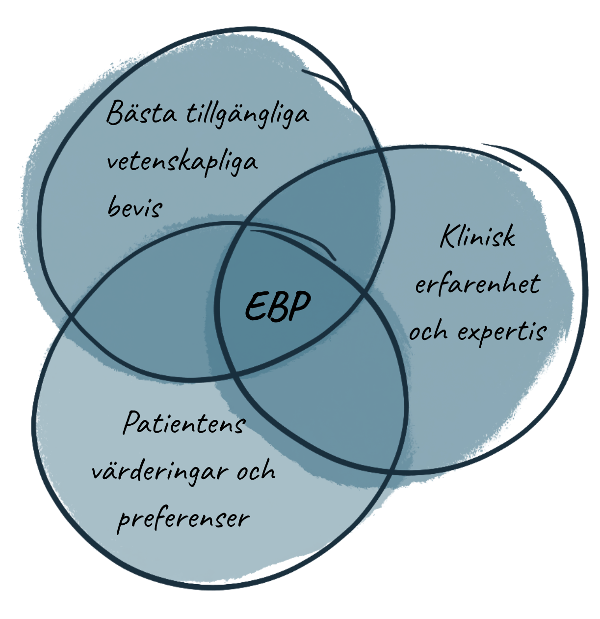 Evidence Based Practice är viktig i min musikterapi. Det bygger på tre grundpelare. För det första används (1) bästa tillgängliga vetenskapliga bevis, det vill säga aktuell forskning och vetenskaplig kunskap. För det andra tas hänsyn till (2) klinisk erfarenhet och expertis, alltså den professionella bedömningen och erfarenheten hos vårdgivaren. Slutligen är (3) patientens värderingar och preferenser centrala, vilket innebär att individens behov, önskemål och livssituation vägs in i beslutsfattandet. Tillsammans skapar dessa tre pelare en balanserad och välgrundad vård eller behandling.